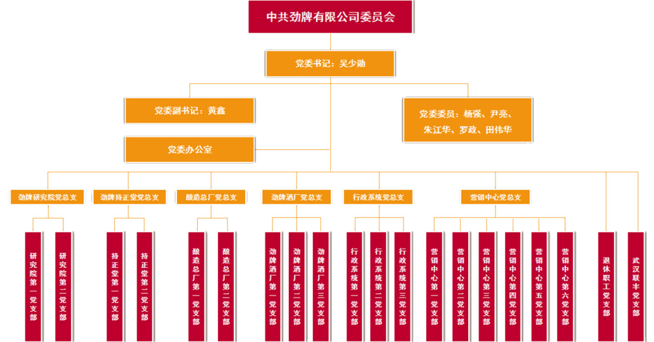 在各級黨組織的高度重視和親切的關(guān)懷下,勁牌有限公司的基層黨組織隨著企業(yè)的穩(wěn)健發(fā)展而不斷壯大,1996年升格為黨委,2013年成立紀(jì)委;同時建立健全了工會、共青團、婦聯(lián)組織,配備了專兼職人員,形成了黨建工作齊抓共管的工作格局。目前,公司黨委下轄6個黨總支,共設(shè)20個黨支部。