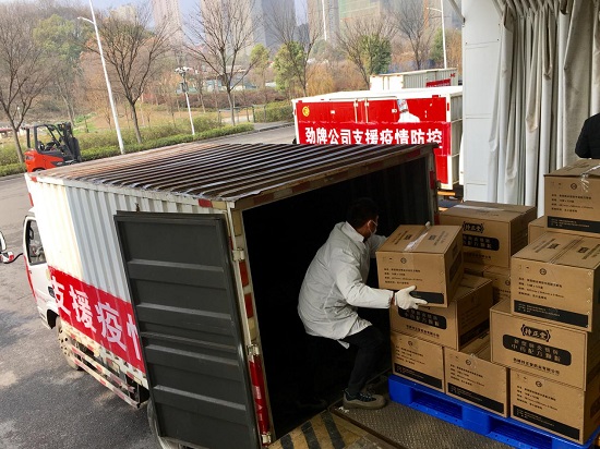 大年初二,第一批預(yù)防中藥配方顆粒藥品就近送往黃石和大冶;大年初三,第一批馳援武漢疫區(qū)的藥品送到醫(yī)護(hù)人員手中;大年初四,第一批馳援黃岡疫區(qū)的藥品送到醫(yī)護(hù)人員手中……“時間就是生命”,勁牌千方百計提高預(yù)防藥品產(chǎn)能的同時,也想方設(shè)法第一時間將藥品送往疫區(qū)一線。